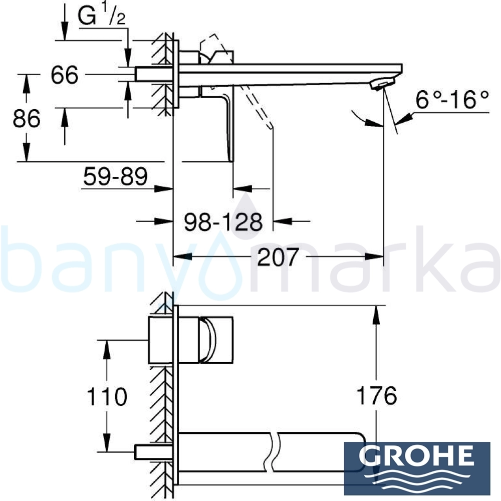 | Uyarı ve Genel Açıklamalar: | Duvara monte. 23 571 000 kodlu sıva altı grubu ürüne dahil değildir. Ayrıca sipariş edilmelidir. Metal rozet metal kol GROHE StarLight kaplama GROHE EcoJoy köpük 5,7 l/dak GROHE AquaGuide ayarlanabilir köpük merkez mesafe 110 mm projeksiyon 207 mm |