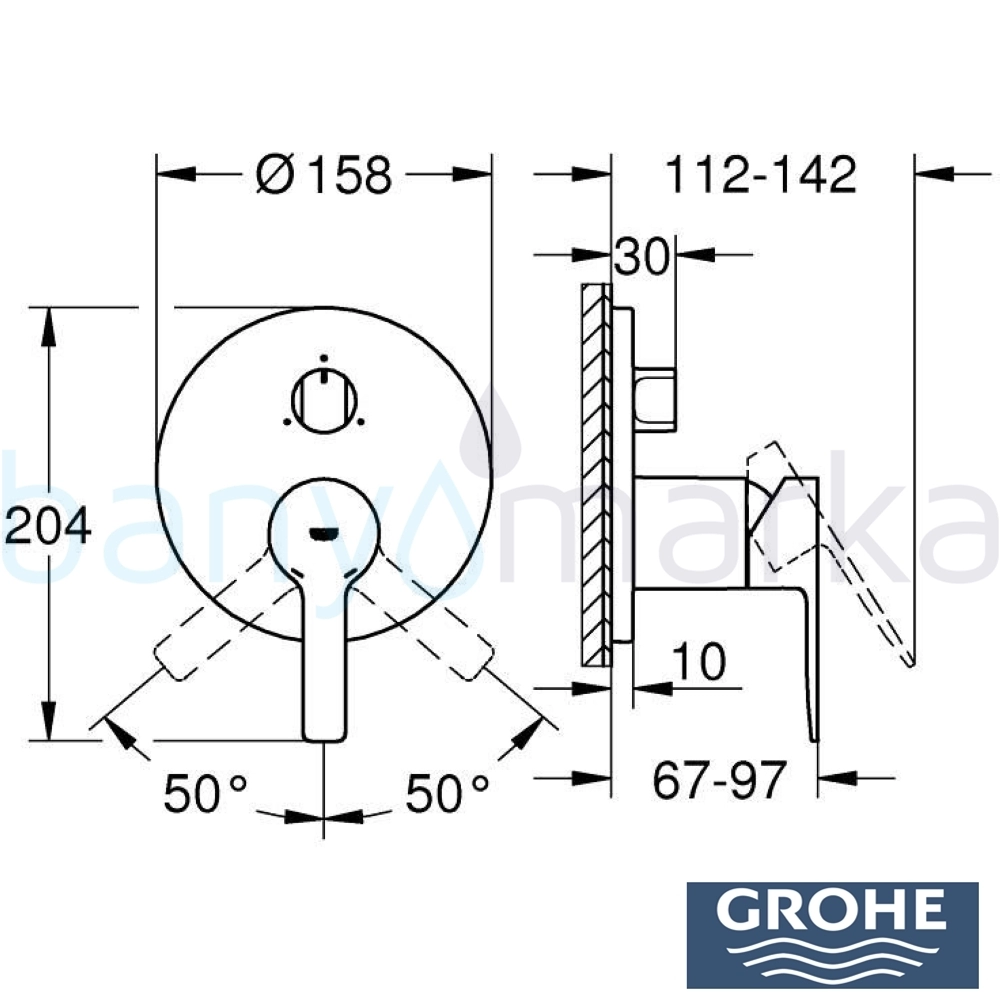 | Uyarı ve Genel Açıklamalar: | GROHE Rapido Akıllı Kutu (35 600 veya 35 604) kodlu sıva altı grubu ürün dahil değildir. Ayrıca sipariş edilmelidir. GROHE SilkMove 46 mm seramik kartuş GROHE StarLight kaplama GROHE FastFixation özellikli duvar rozeti (kapalı rozet ve mil sızdırmazlığı, kapaklı sabitleme) metal rozet, geriye dönük olarak 6%B0 ayarlanabilir metal kol 3 yollu yön değiştirici |
