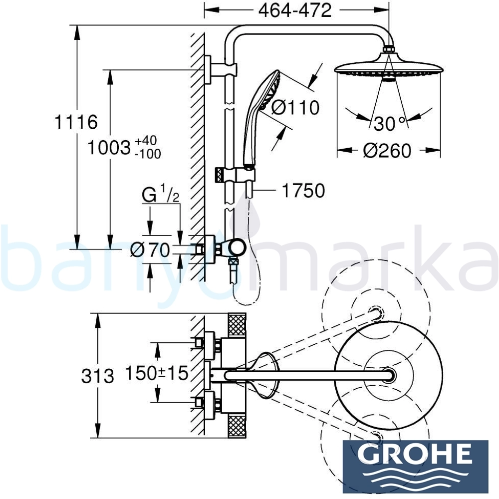 | Genel Açıklamalar: | Yatay döner duş kolu 450 mm Aquadimmer özellikli termostatik duş bataryası arasında geçişi sağlar: tepe duşu Vitalio Joy 260, 3 püskürtme modeli: Yağmur, SmartRain, Jet. Küresel mafsallı dönme açısı %B1 15 derece, El duşu Vitalio Joy 110 Masaj, 3 püskürtme modeli:Yağmur, SmartRain, Masaj kayma elemanı ile yüksekliği ayarlanabilir, duş hortumu VitalioFlex Trend 1750 mm 1/2" x 1/2" (28 742). GROHE EasyReach tepsi, GROHE Su Tasarrufu 9,5 l/dak akış sınırlayıcı, Mum termoelementli GROHE TurboStat kompakt kartuş GROHE SafeStop Plus isteğe bağlı 43%B0C sıcaklık sınırlayıcı dahildir, GROHE DreamSpray mükemmel akış, GROHE StarLight kaplama uzun ömür için Inner WaterGuide SpeedClean kireç kırıcı sistem Twistfree - dolanmayan hortum GROHE MetalGrip ergonomik metal kollar şok ısıtıcılar için uygun 18kW/h en düşük akış miktarı 7 l/dk. GROHE SpreyDimmer (kademesiz akış hızı azaltma). GROHE CoolTouch sıcak yüzeylerde haşlanmayı önler, Tırtıklı yapıya sahip GROHE ProGrip. GROHE Su Tasarrufu 9,5 l/dak akış sınırlayıcı, GROHE FastFixation üst braket ayarlanabilir, GROHE QuickSpanner yalnızca krom modelinde mevcuttur. |