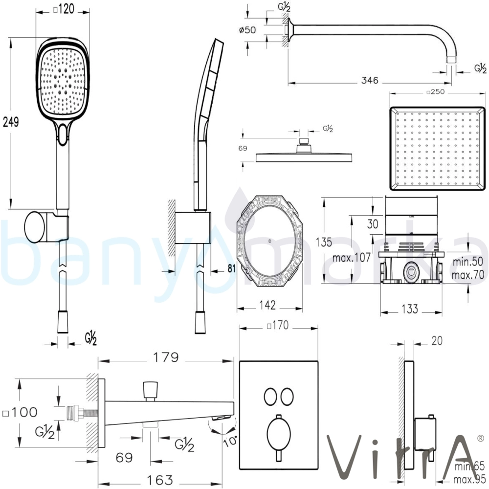 | Ürün Adı: | Vitra AquaHeat AquaControl Square Ankastre Termostatik Banyo Seti |