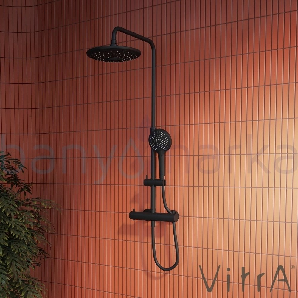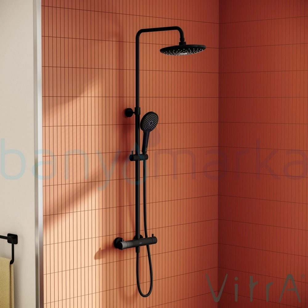 Vitra AquaHeat Bliss 240 2F Duş Kolonu ve Termostatik Duş Bataryası Sistemi, Mat Siyah