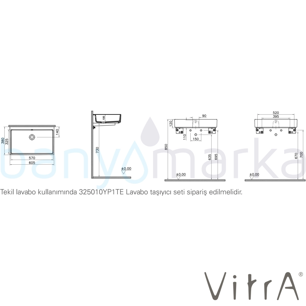 | Uyarı ve Genel Açıklamalar: | Armatür deliksiz, su taşma delikli, tekil kullanım, taşıyıcı set ile kullanılmalıdır.Su taşma adaptörü ürüne dahildir. Süzgeç ve sifon ürüne dahil değildir. Tekil lavabo kullanımında 325010YP1TE Lavabo taşıyıcı seti sipariş edilmelidir. Ürüne dahil değildir. Ayrıca sipariş edilmelidir. |