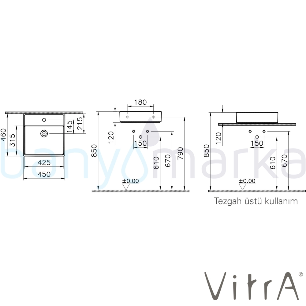 | Ürün Adı: | Vitra ArchiPlan Lavabo, 45x46 cm, Mat Taş Gri, VitraClean |
