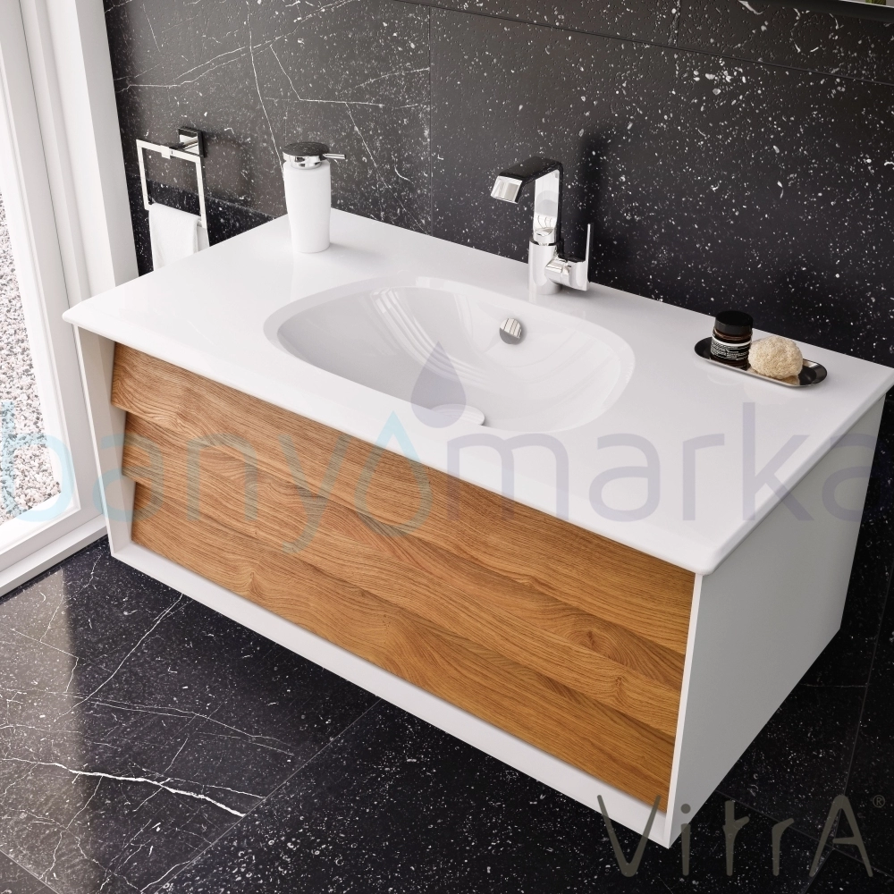Vitra Frame Lavabo Dolabı, 100 cm, Lavabolu, Mat Beyaz-Dore Meşe (5709 Beyaz Lavabo Dahil)