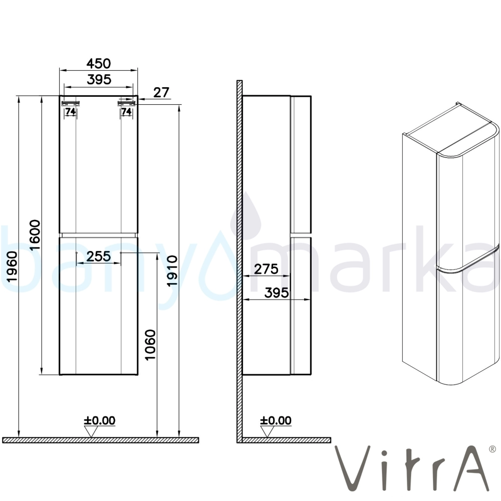 | Ürün Adı: | Vitra Gala Boy Dolabı, Mat Taş Gri (Sağ) |