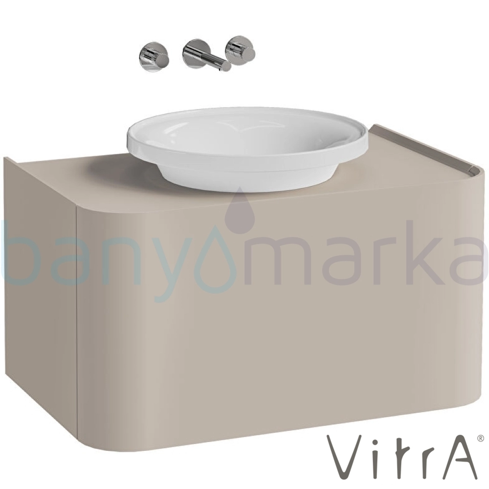 Vitra Gala Tek Çekmeceli Çanak Lavabo Uyumlu Lavabo Dolabı, Mat Soft Bej, 80 cm (Çanak Lavabo Dahil-Armatür Deliksiz)