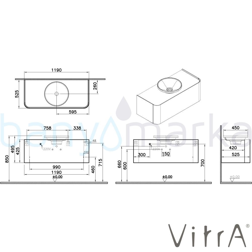| Ürün Adı: | Vitra Gala Tek Çekmeceli Çanak Lavabo Uyumlu Lavabo Dolabı, Mat Taş Gri, 120 cm (Çanak Lavabo Dahil-Armatür Deliksiz) |