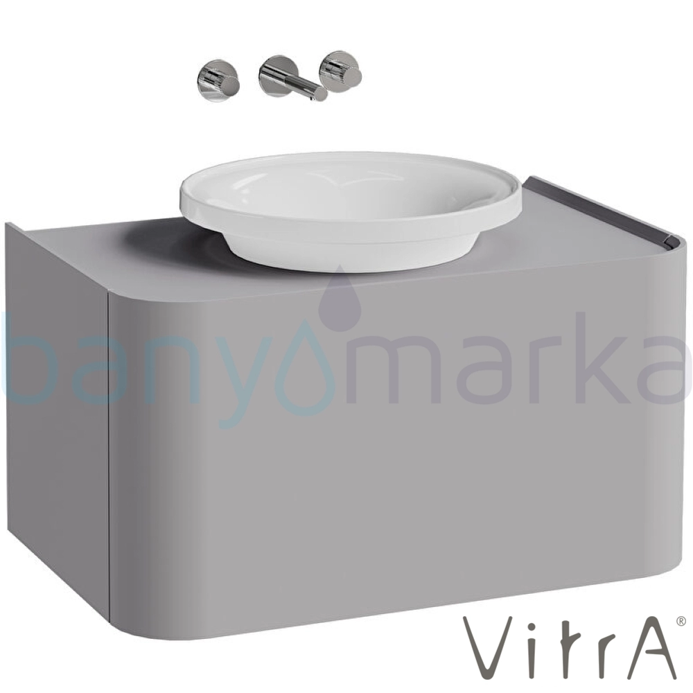 Vitra Gala Tek Çekmeceli Çanak Lavabo Uyumlu Lavabo Dolabı, Mat Taş Gri, 80 cm (Çanak Lavabo Dahil-Armatür Deliksiz)