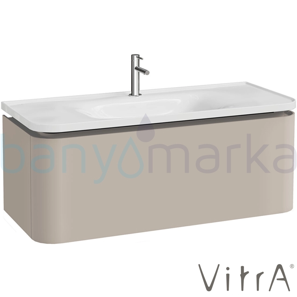 Vitra Gala Tek Çekmeceli Etajerli Lavabo Dolabı, Mat Soft Bej, 120 cm (Etajerli Lavabo Dahil-Tek Armatür Delikli) - 80378