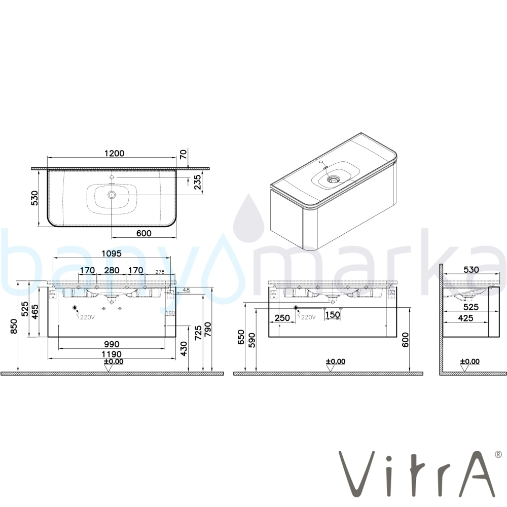 | Uyarı ve Genel Açıklamalar: | 7921B403-2280 kodlu Vitra Gala Etajerli Lavabo, 120 cm ürüne dahildir. Ürüne seramik sifon tapası dahildir. Sifon alt grubu ve süzgeç ürüne dahil değildir, ayrıca sipariş edilmelidir. A45123 ile kullanılması önerilir. Sifon oyuğu bulunmamaktadır. Lavaboda 3000K ve IP67, LED iç aydınlatma bulunmaktadır. G sınıfı enerji verimliliğine sahiptir. |