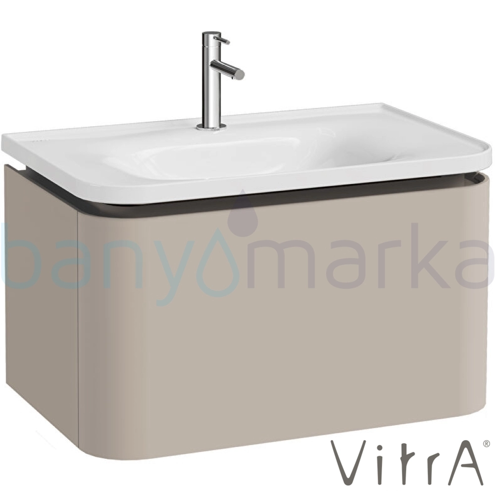 Vitra Gala Tek Çekmeceli Etajerli Lavabo Dolabı, Mat Soft Bej, 80 cm (Etajerli Lavabo Dahil-Tek Armatür Delikli) - 80372
