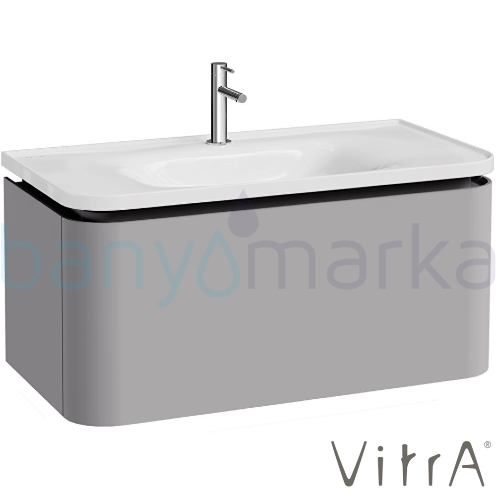Vitra Gala Tek Çekmeceli Etajerli Lavabo Dolabı, Mat Taş Gri, 100 cm (Etajerli Lavabo Dahil-Tek Armatür Delikli) - 80376