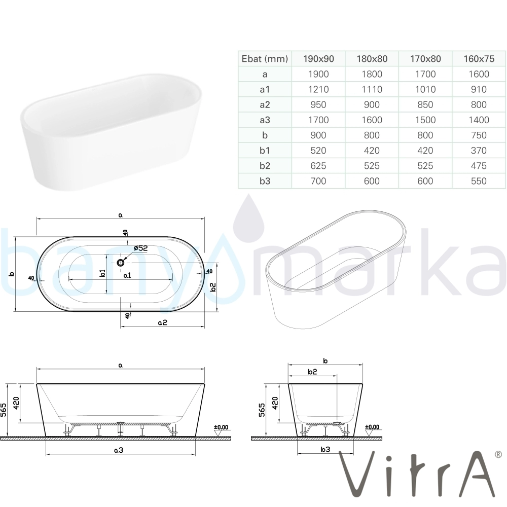 | Ürün Adı: | Vitra Geo 160x75 Küvet, Gizli Taşmalı Sifon + Ayak, Bej |