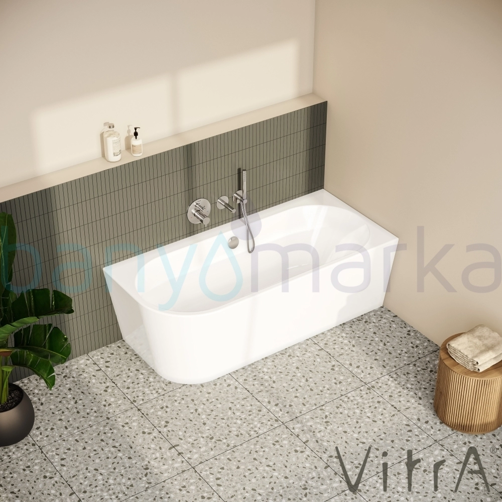 Vitra Geo 165x75 Sağ Köşe Oval Küvet (Ayak ve Gizli Taşmalı Sifon Dahil), Beyaz