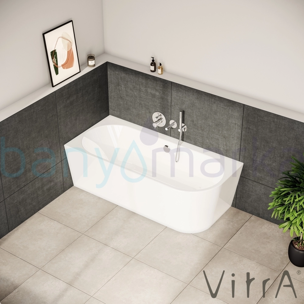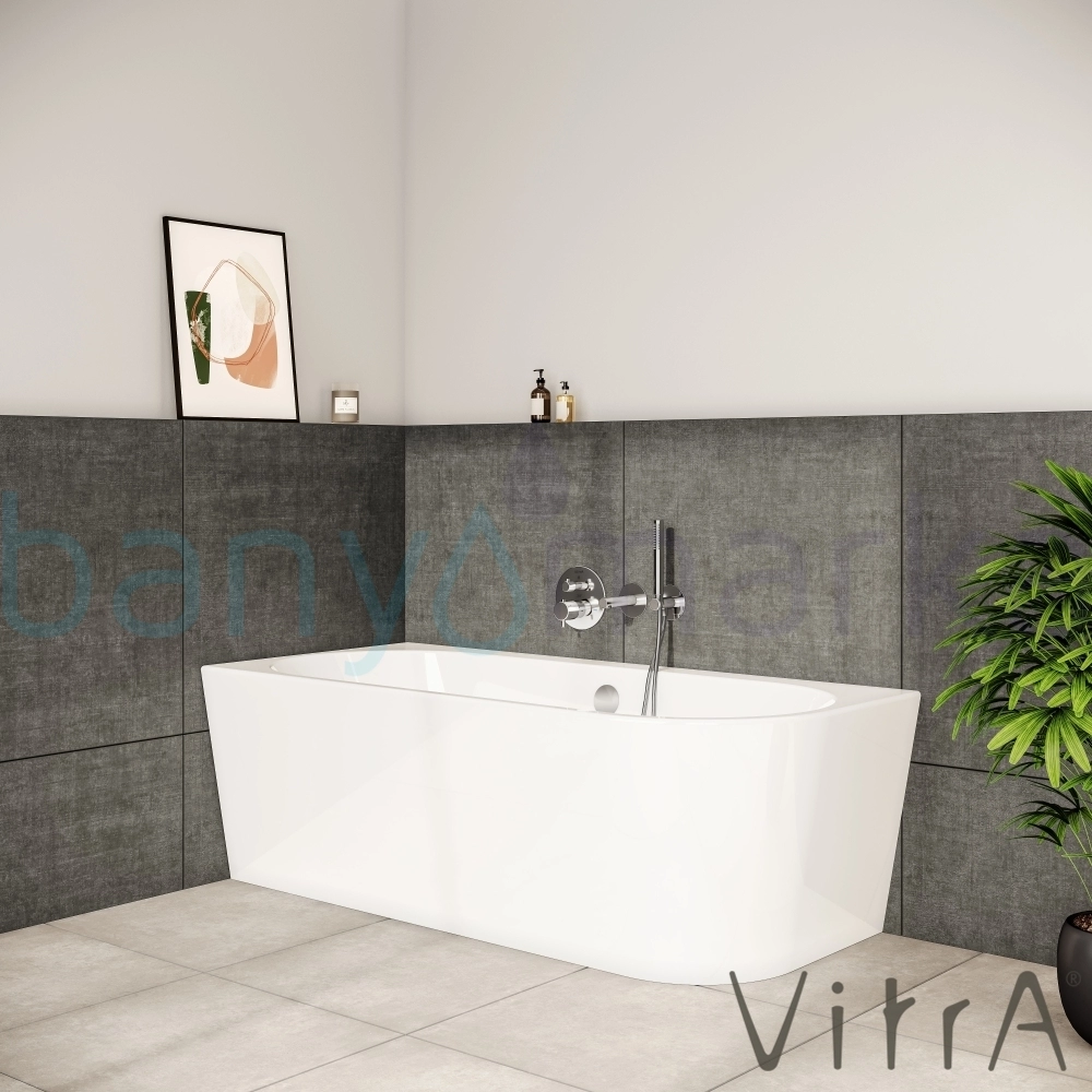 Vitra Geo 165x75 Sol Köşe Oval Küvet (Ayak ve Gizli Taşmalı Sifon Dahil), Beyaz