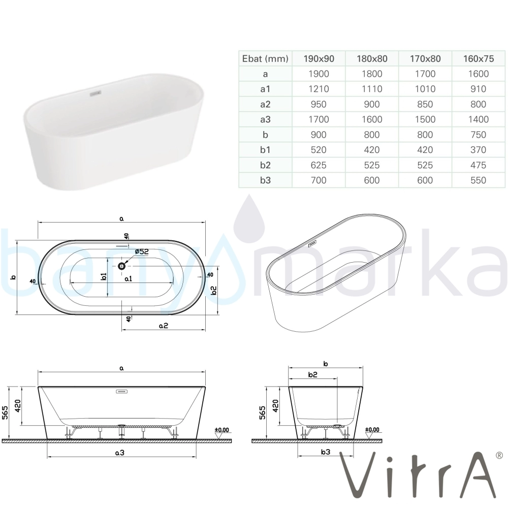 | Ürün Adı: | Vitra Geo 170x80 Oval Küvet, Dikdörtgen Taşmalı Sifon + Ayak, Beyaz |
