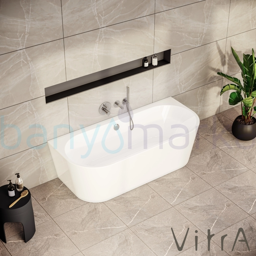 Vitra Geo 180x80 Ön Duvar Oval Küvet (Ayak ve Gizli Taşmalı Sifon Dahil), Beyaz