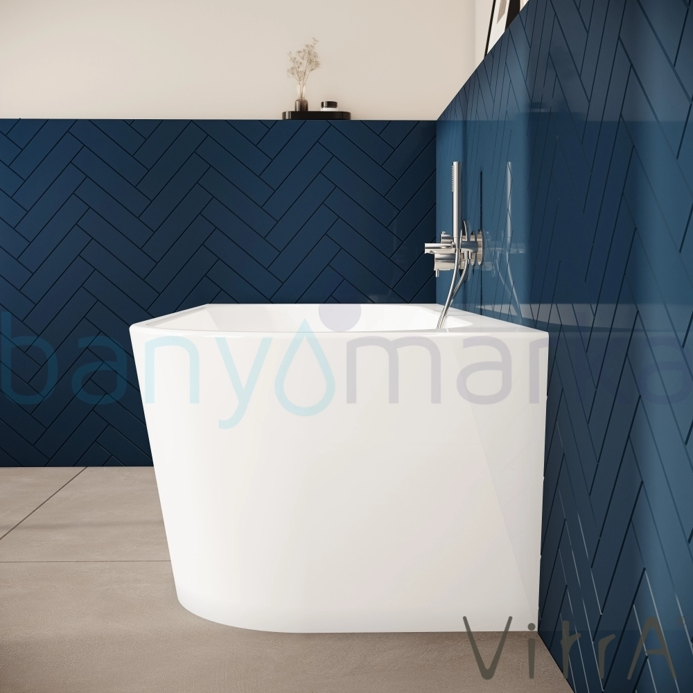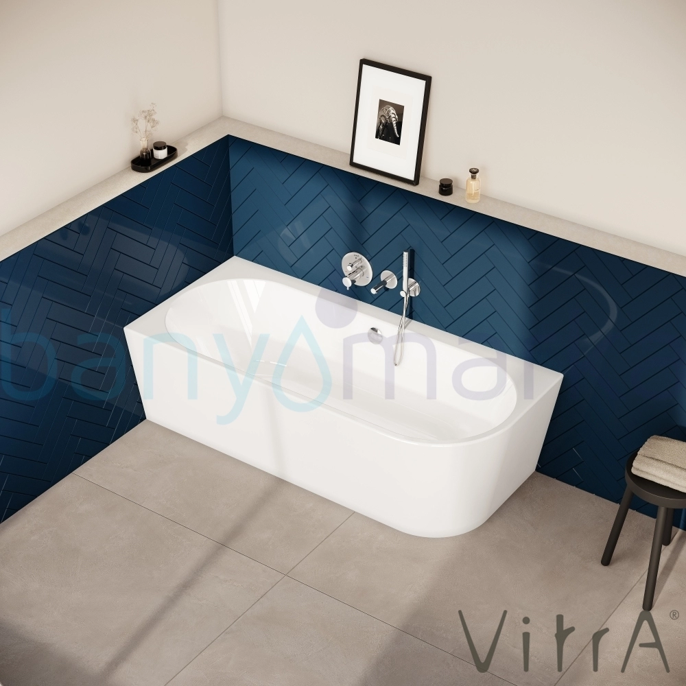 Vitra Geo 180x80 Sol Köşe Oval Küvet (Ayak ve Gizli Taşmalı Sifon Dahil), Beyaz