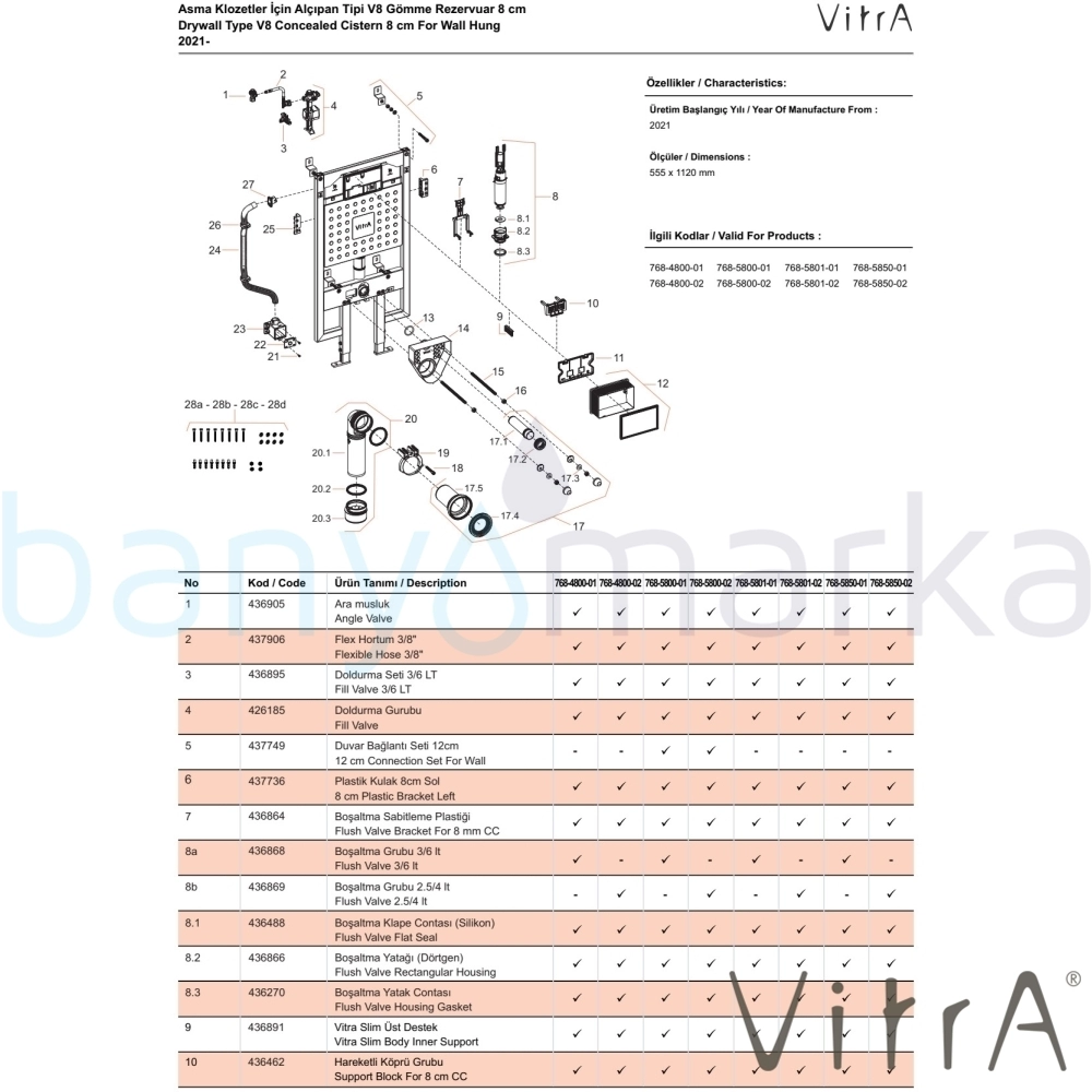 | Uyarı ve Genel Açıklamalar: | 740-0XXX kumanda panelleri ile sipariş edilmelidir. 3/6 lt kullanıma ayarlı. Mekanik ve pnömatik kontrollü olarak uygulanabilir. Vitra 10 yıl ürün garantisi ve 30 yıl yedek parça temin garantisi. |