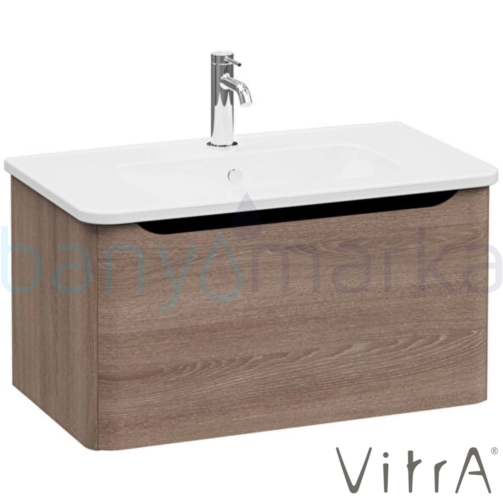 Vitra Integra Round Tek Çekmeceli Lavabo Dolabı, Ayaksız, 80 cm, Moka Meşe - 69913