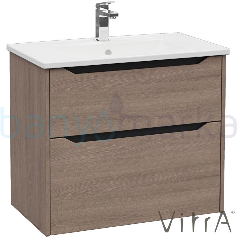Vitra Integra Square Çift Çekmeceli Lavabo Dolabı, Ayaksız, 80 cm, Moka Meşe - 80217
