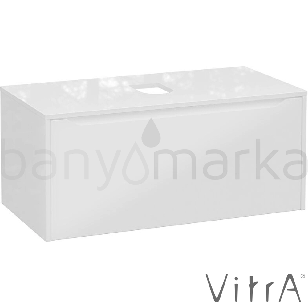 Vitra Integra Square Tek Çekmeceli Çanak Lavabo Uyumlu Lavabo Dolabı, Parlak Beyaz, 100 cm (Çanak Lavabo Hariç-Armatür Deliksiz) - 80282