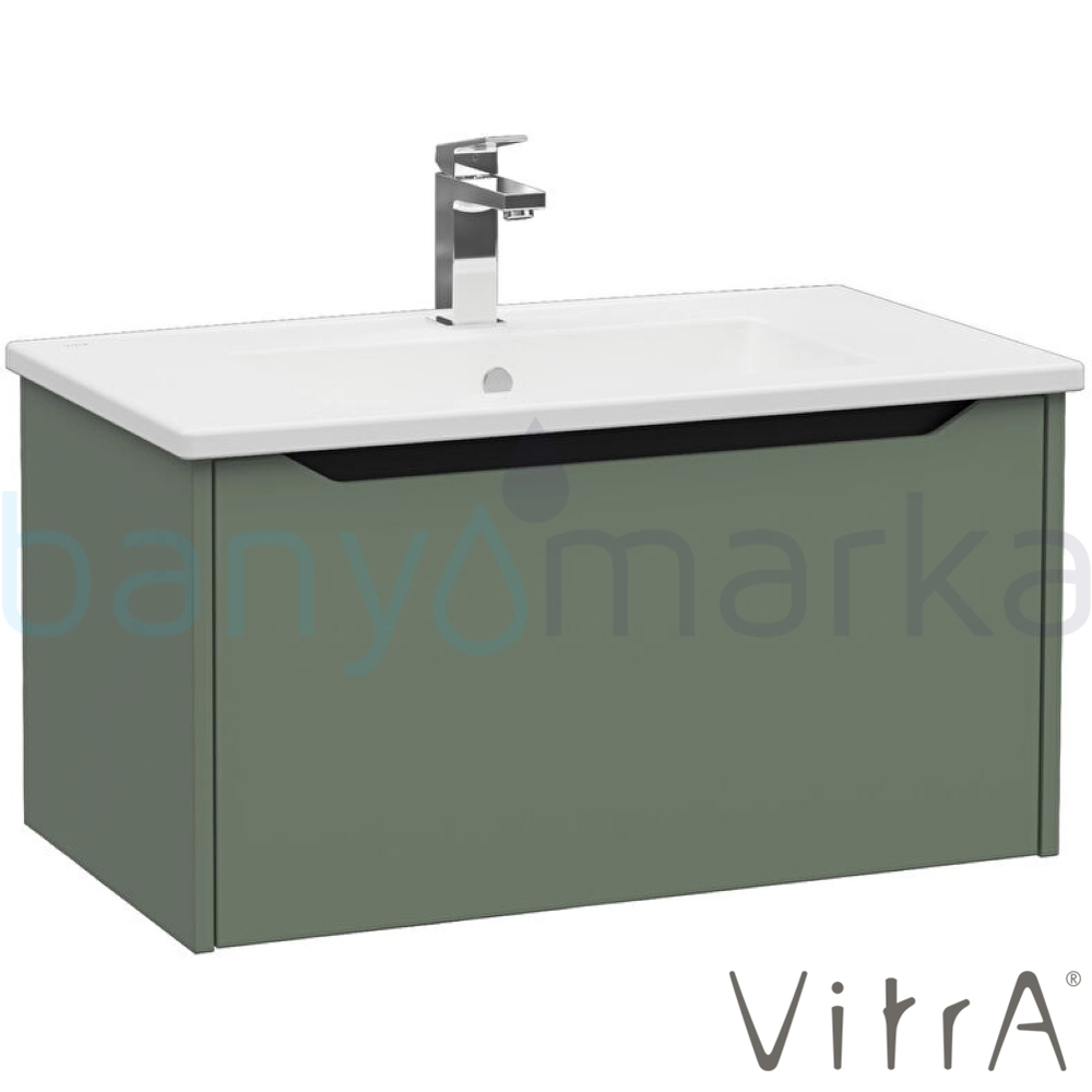 Vitra Integra Square Tek Çekmeceli Lavabo Dolabı, Ayaksız, 80 cm, Mat Yeşil - 80143