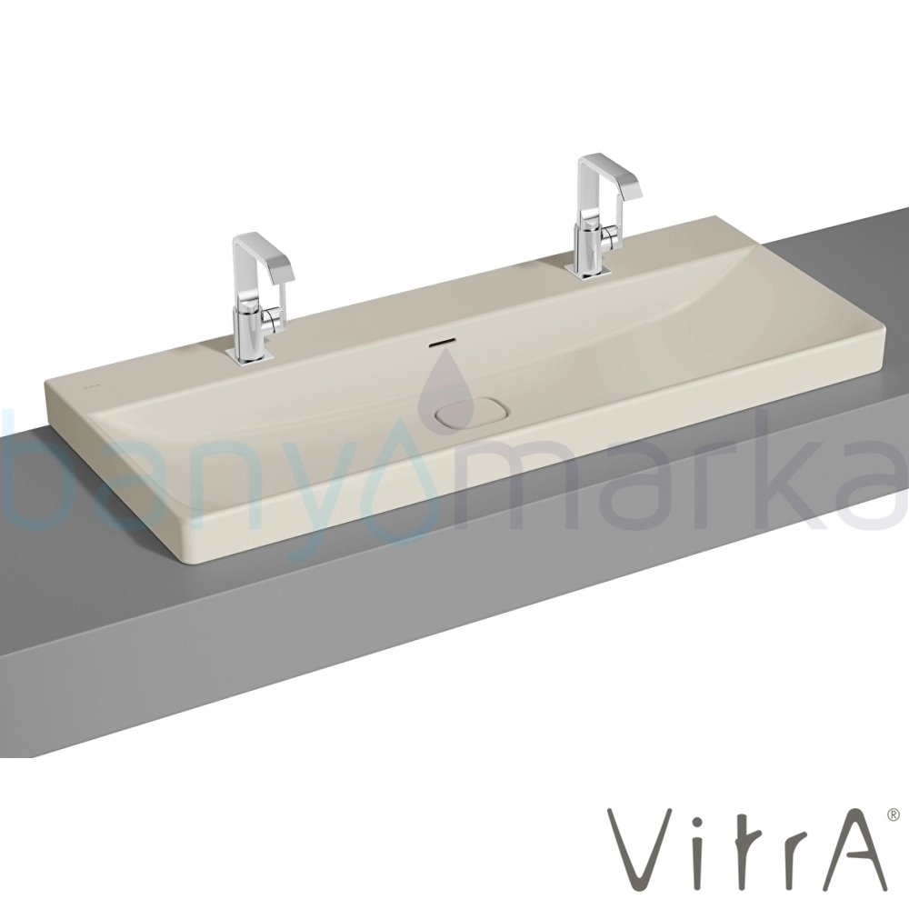 Vitra Metropole Çift Armatür Delikli Çanak Lavabo, 120 cm, Mat Kum Beji