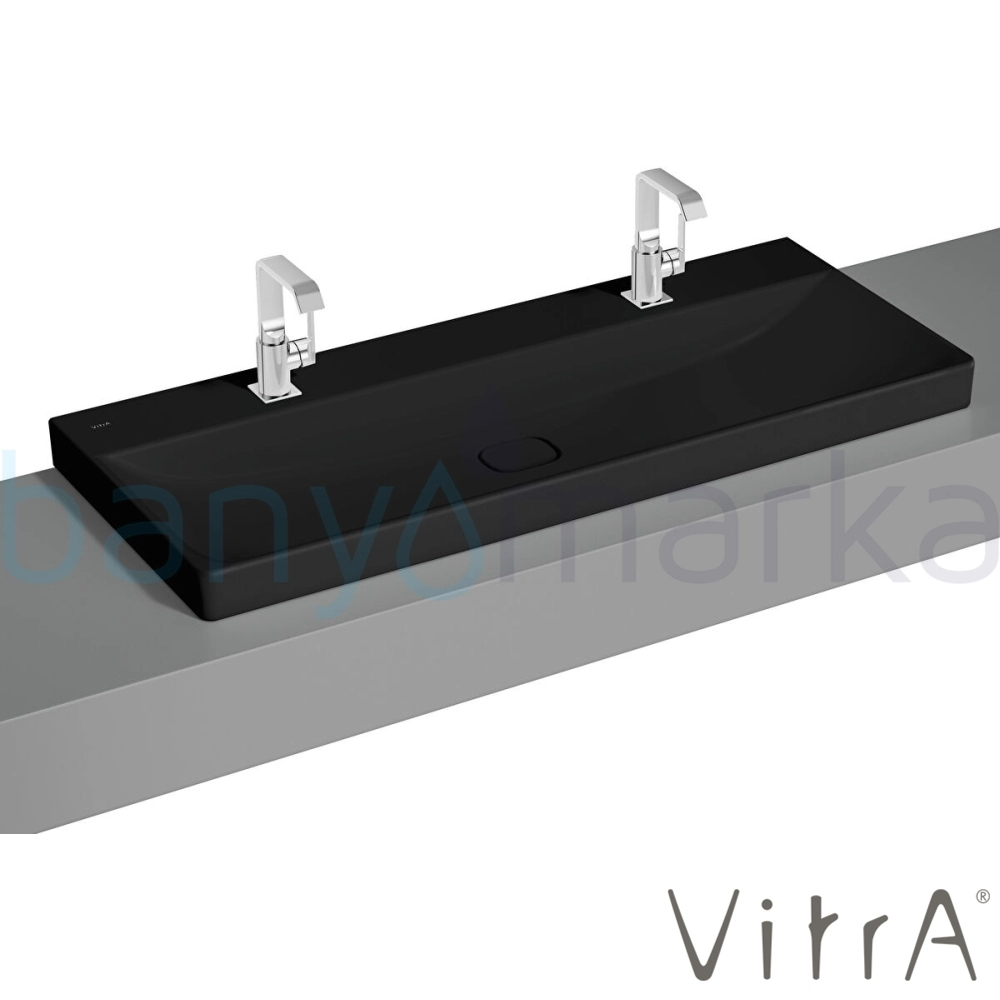 Vitra Metropole Çift Armatür Delikli Çanak Lavabo, 120 cm, Mat Siyah, VitraClean