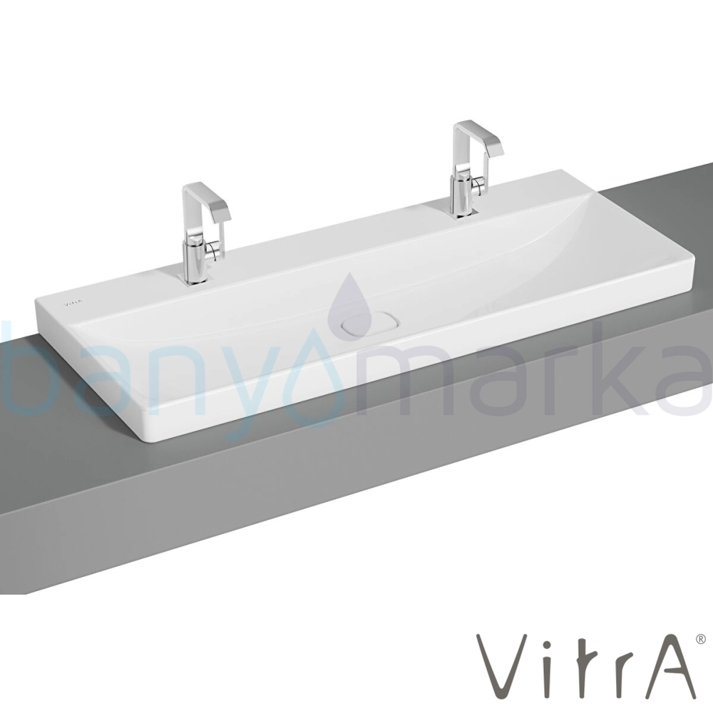 Vitra Metropole Çift Armatür Delikli Çanak Lavabo, 120 cm, VitraClean