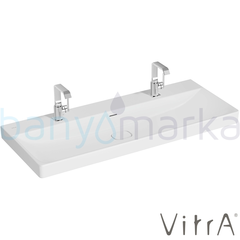Vitra Metropole Çift Armatür Delikli Lavabo, 120 cm, Mat Beyaz, VitraClean