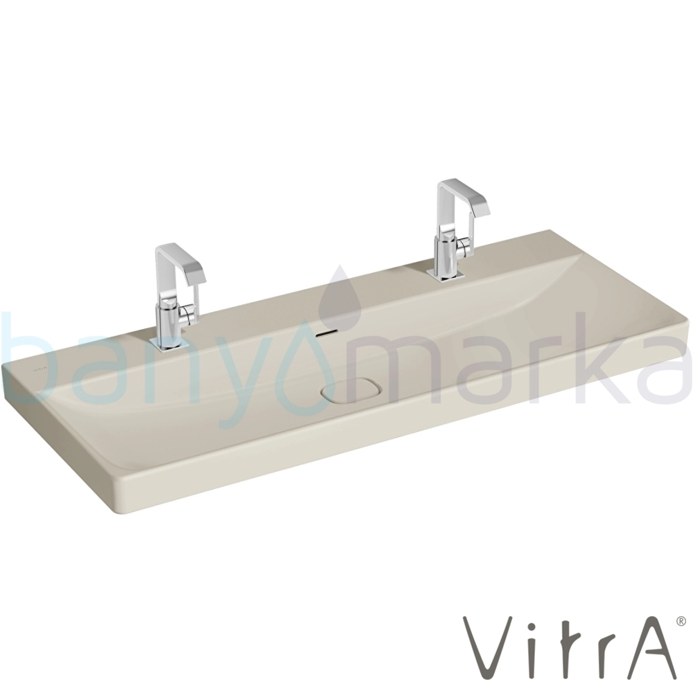 Vitra Metropole Çift Armatür Delikli Lavabo, 120 cm, Mat Kum Beji