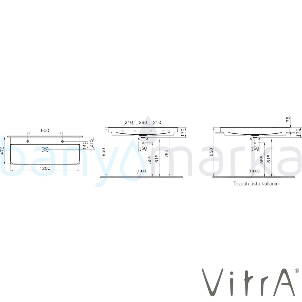 | Ürün Adı: | Vitra Metropole Çift Armatür Delikli Lavabo, 120 cm, VitraClean |