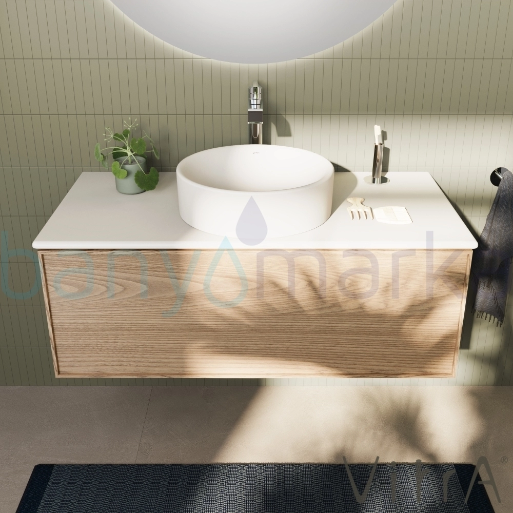 Vitra Metropole Edge Lavabo Dolabı, Tek Çekmeceli, Parlak Beyaz Çanak Lavabo ve Seramik Tezgahlı, 100 cm, Açık Meşe