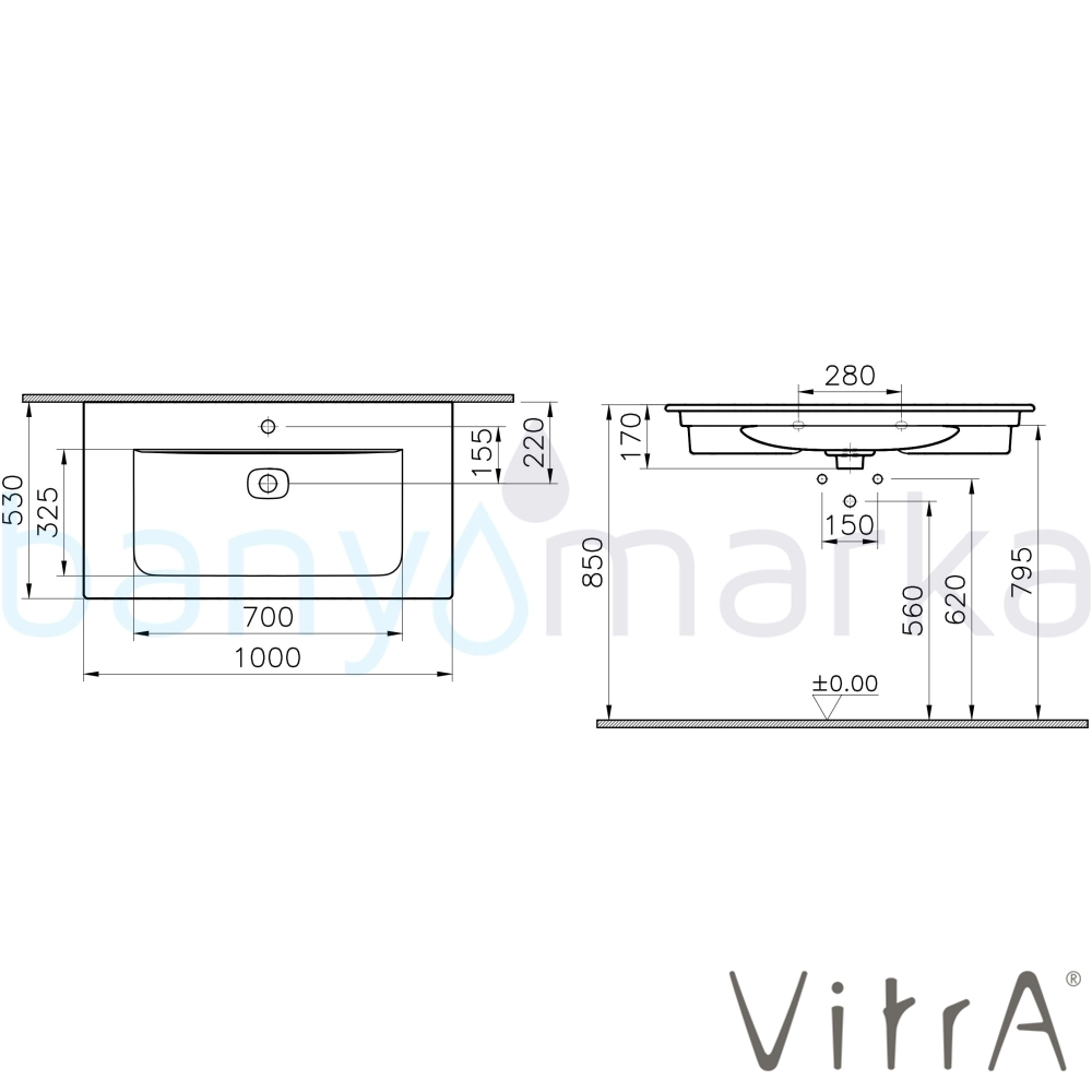 | Ürün Adı: | Vitra Metropole Etajerli Lavabo, 100 cm, Mat Siyah, VitraClean |