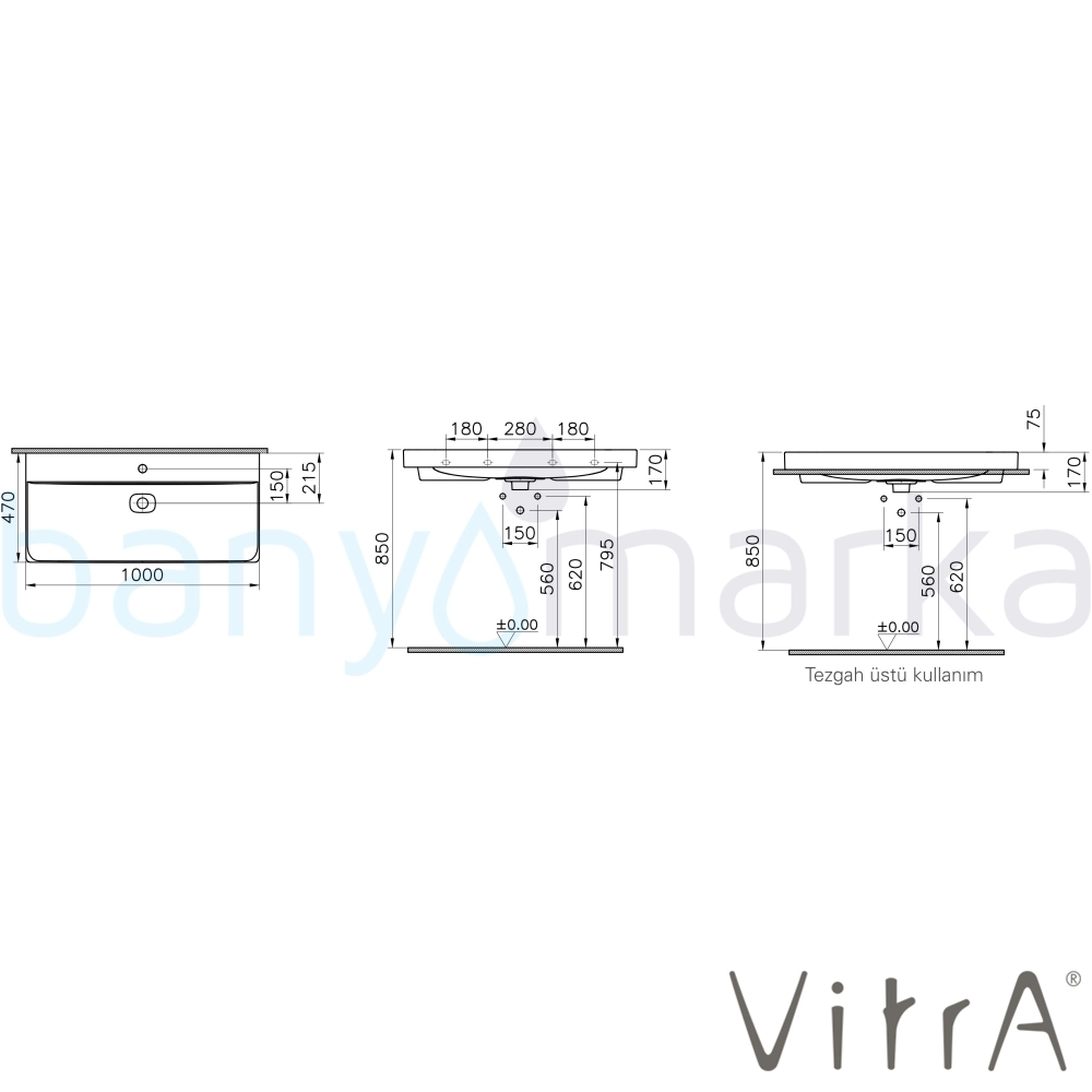 | Ürün Adı: | Vitra Metropole Lavabo, 100 cm, Mat Kum Beji |