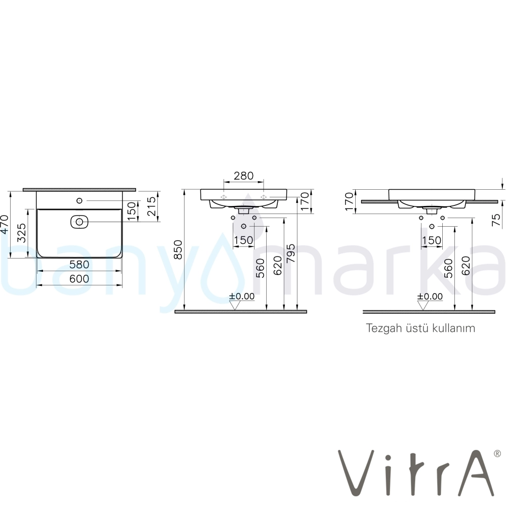 | Ürün Adı: | Vitra Metropole Lavabo, 60 cm, VitraClean |