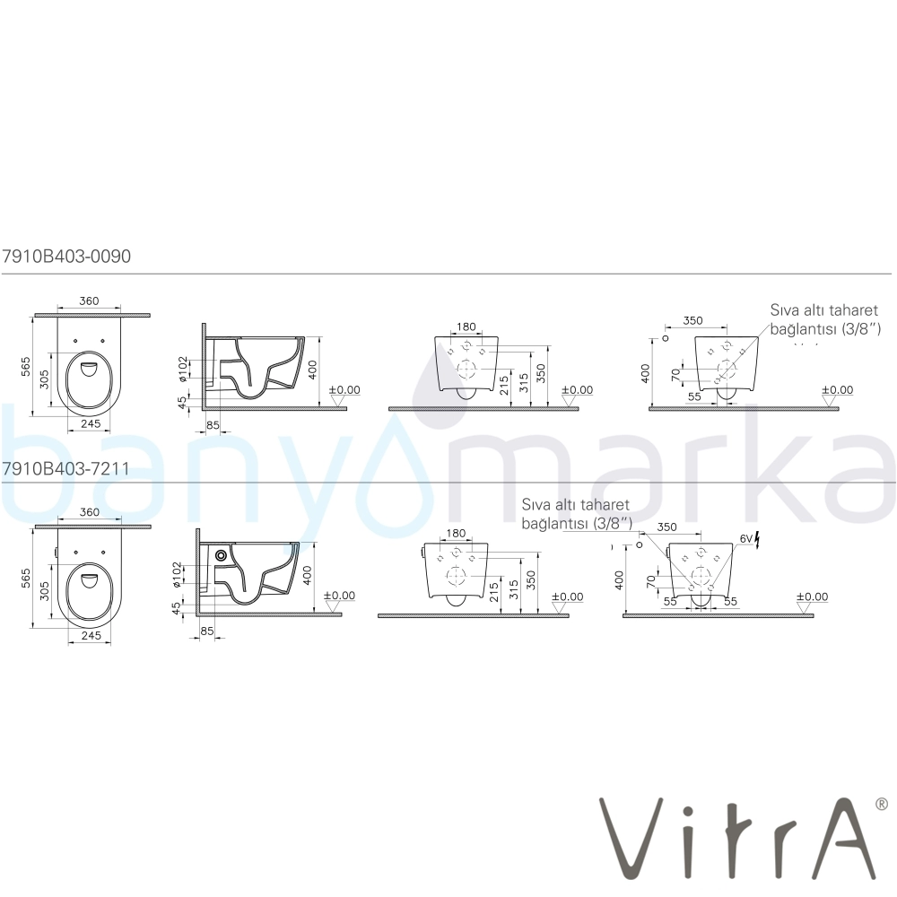 | Uyarı ve Genel Açıklamalar: | Klozet kapağı hariçtir. Ayrıca sipariş verilmelidir. 208-420R009, 210-420R009 ve 231-420R009 yavaş kapanır klozet kapakları ile uyumludur. Su tasarruflu 770-XXXX-01, 761-XXXX-01, 762-XXXX-01 ve 768-XXXX-01 kodlu gömme rezervuarlar ile uyumludur. Taharet borusu girişi sıva altı uygulamalı, clean, gizli montaj. |