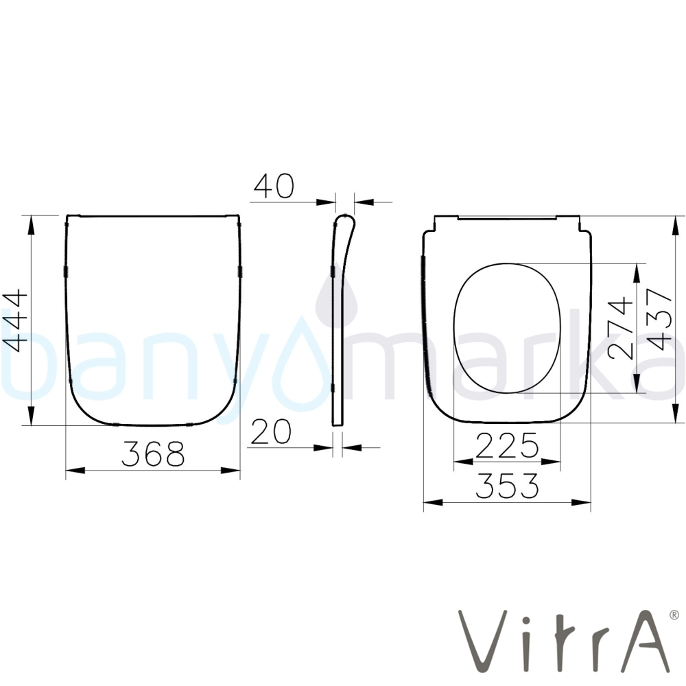 | Uyarı ve Genel Açıklamalar: | Duroplast, slim, tek kat görünümlü, metal menteşeli, üstten sıkmalı, yavaş kapanır. Vitra Metropole Square, Integra Square, Zentrum Square ve S20 Square serisi klozetler ile uyumludur. |