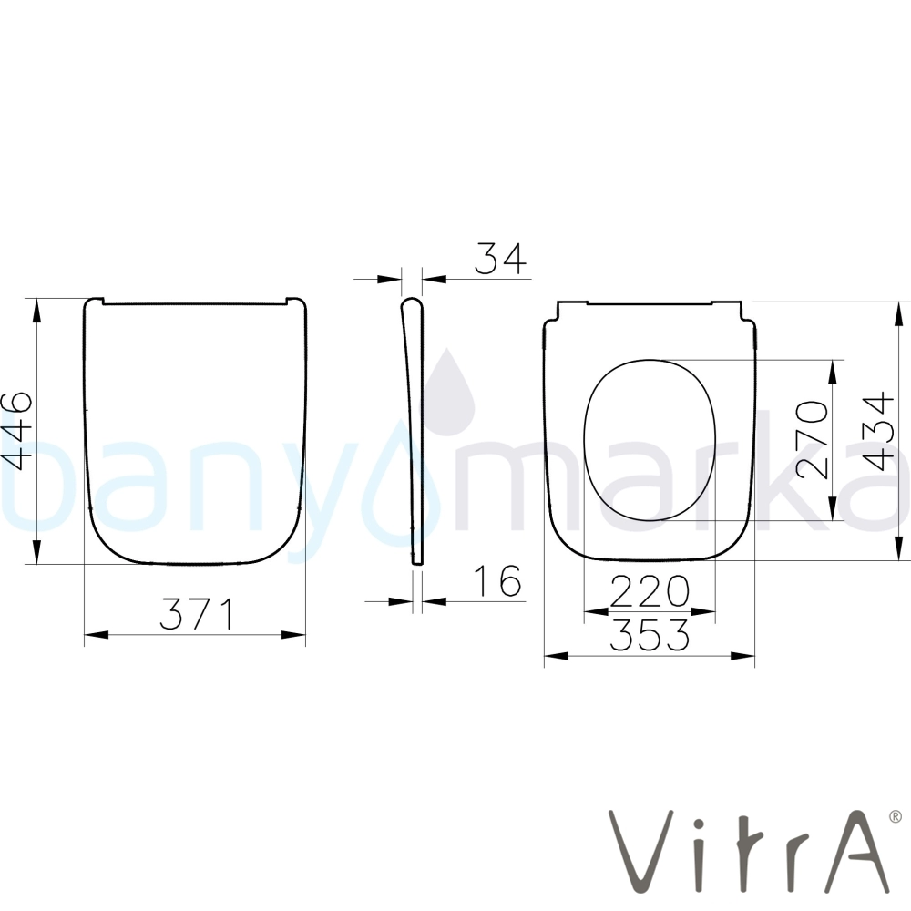 | Uyarı ve Genel Açıklamalar: | Duroplast, süper slim, tek kat görünümlü, metal menteşeli, üstten sıkmalı, yavaş kapanır, kolay sök-tak. Vitra Metropole Square, Integra Square, Zentrum Square ve S20 Square serisi klozetler ile uyumludur. |