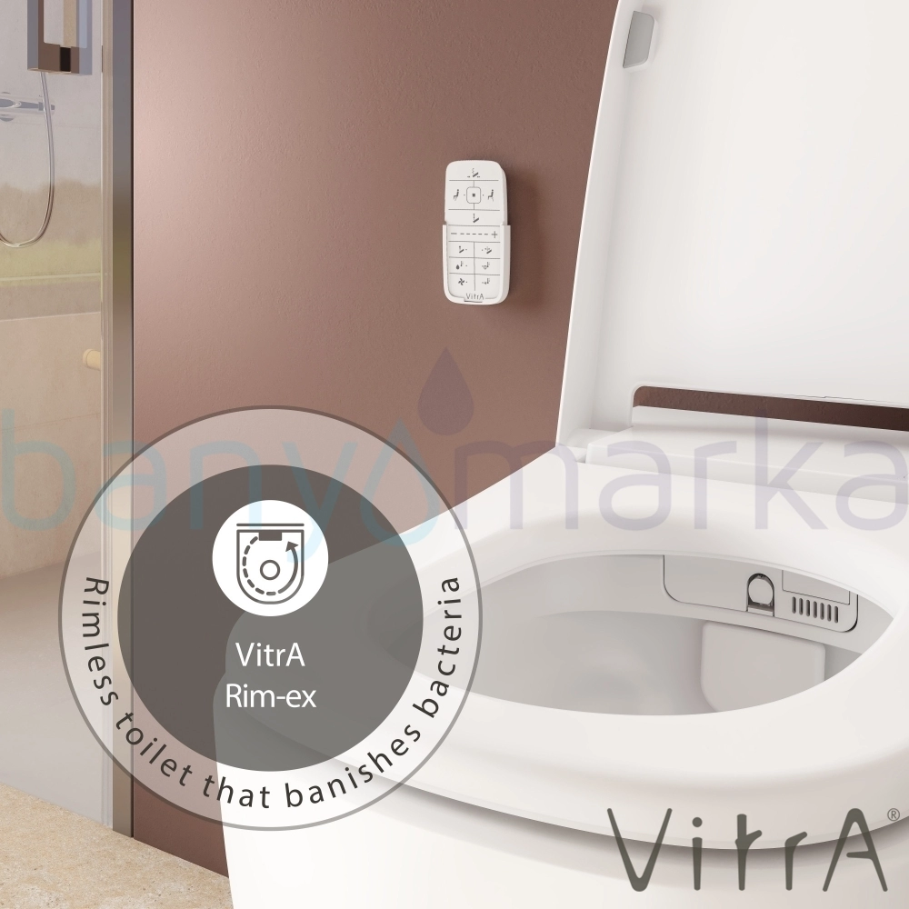 | Uyarı ve Genel Açıklamalar: | VitrA çağın en ileri kişisel temizlik sistemini sunuyor. V-Care Akıllı Klozet kanalsız Rim-ex teknolojisiyle hijyenik ve kolay temizleniyor. Kendini dezenfekte eden taharet borusu, ayarlanabilir su sıcaklığı, farklı yıkama seçenekleri, kurutma ve koku emme özellikleriyle son derece konforlu, uzaktan kumandalı bir VitrA yeniliği. Erkek, kadın yıkama fonksiyonu. Masajlı yıkama opsiyonları. Sıcaklığı ayarlanabilen kapak. Kurutma ve koku emme teknolojisi. Otomatik kapak açma kapama opsiyonu. Uygun pozisyona göre ayarlanabilen, her kullanımdan önce ve sonra temiz su ile otomatik olarak temizlenen taharet borusu. 742-XXXX-01 ve 748-XXXX-01 kodlu gömme rezervuarlar ile uyumludur. |