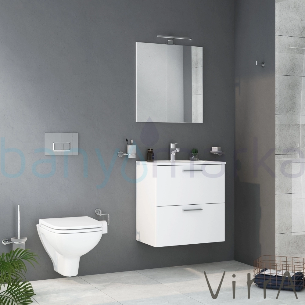 Vitra Mia Demonte Set, 60 cm, Çekmeceli, (Lavabo Dolabı, Aydınlatmalı Ayna), Parlak Beyaz