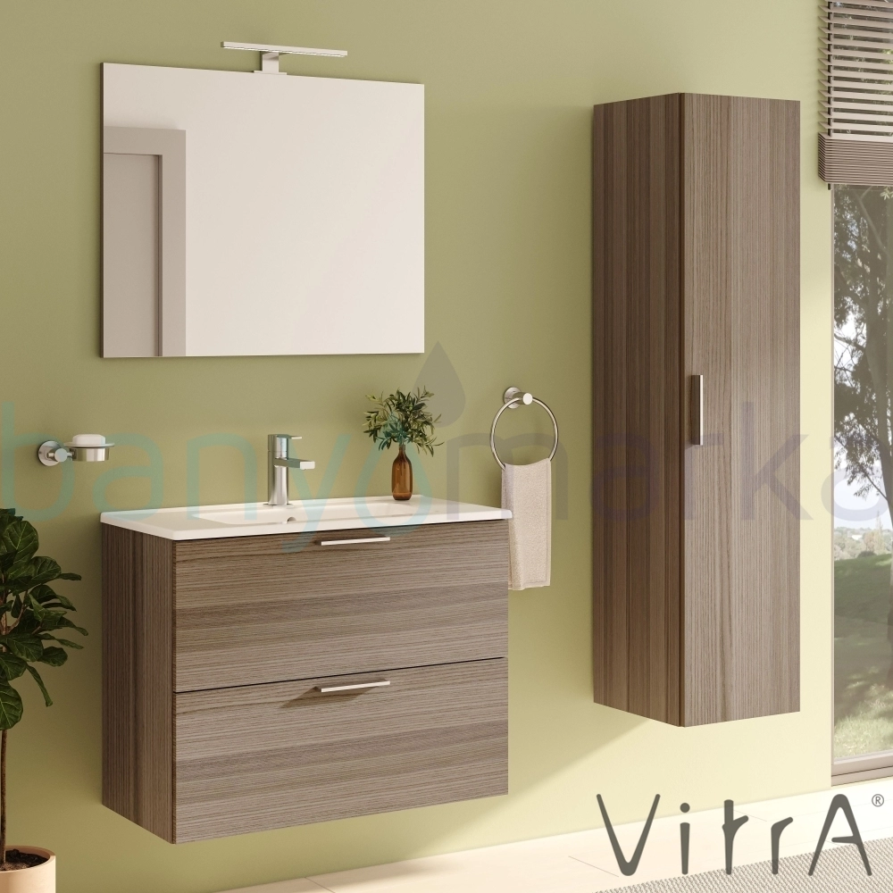 Vitra Mia Demonte Set, 80 cm, Çekmeceli, (Lavabo Dolabı, Aydınlatmalı Ayna), Cordoba