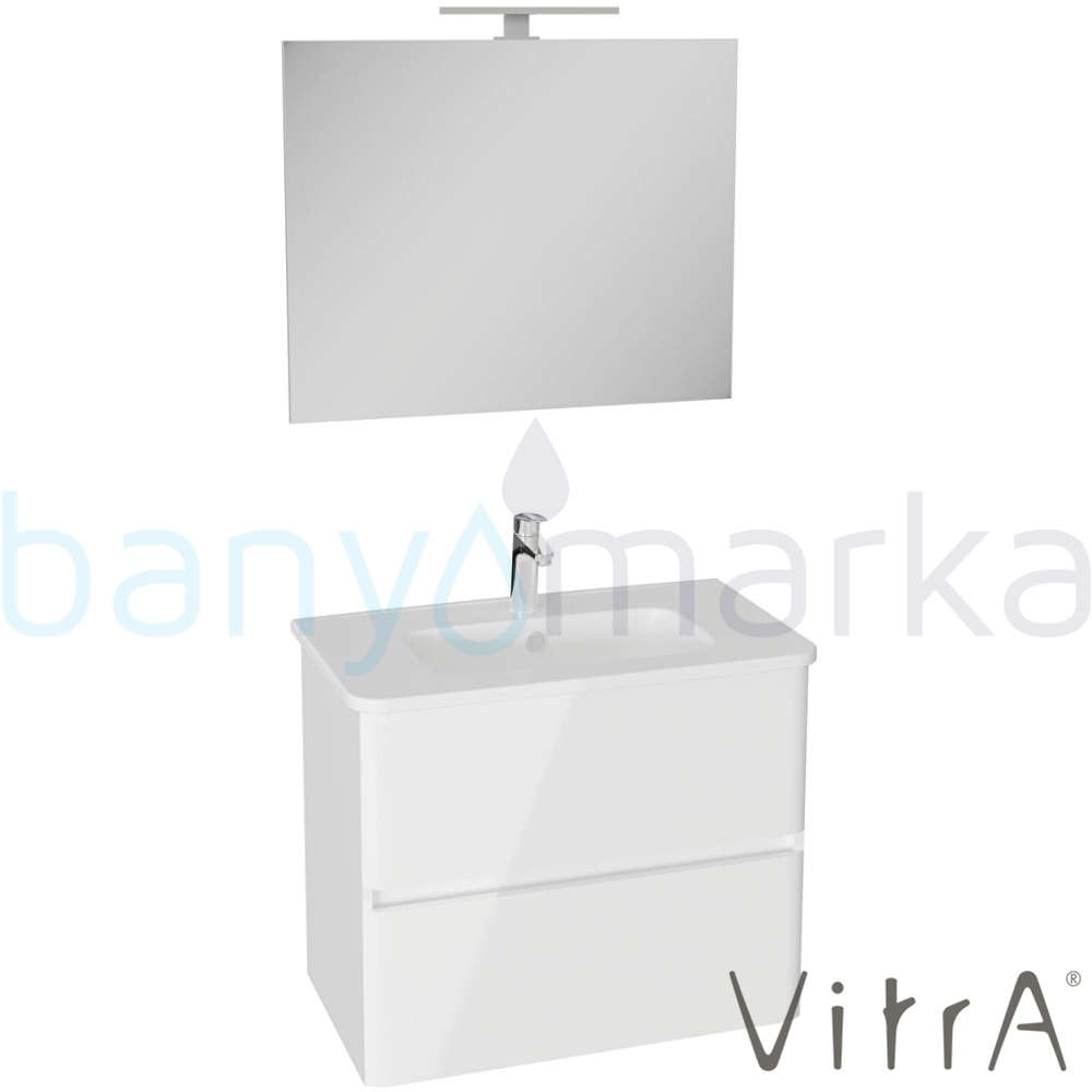 Vitra Mia Plus Round Demonte Set, 80 cm, Çift Çekmeceli, (Lavabo Dolabı, Aydınlatmalı Ayna), Parlak Beyaz