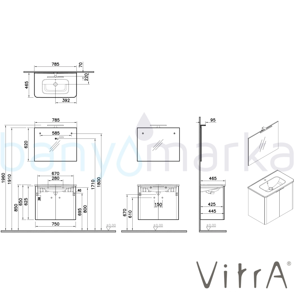 | Uyarı ve Genel Açıklamalar: | Set; lavabo dolabı, 7681B003-0001 seramik lavabo ve led aydınlatmalı düz aynadan oluşmaktadır. Aynanın Ölçüleri: 79x10x62 cm. Sifon alt grubu ve süzgeç ürüne dahildir. 6500 K ve IP44, aplik aydınlatmalıdır. F sınıfı enerji verimliliğine sahiptir. Oda anahtarına bağlanmalıdır. |