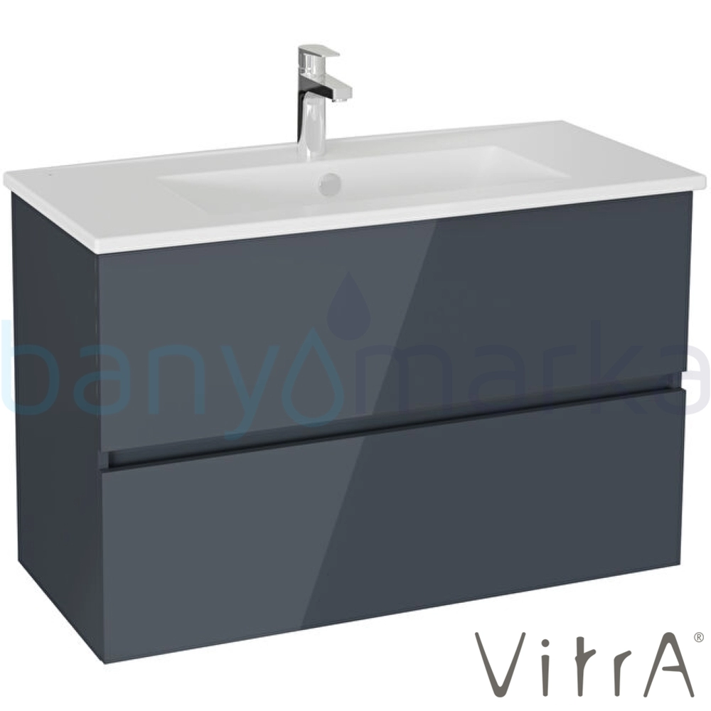 Vitra Mia Plus Square Çift Çekmeceli Lavabo Dolabı, 100 cm, Parlak Antrasit - 69753