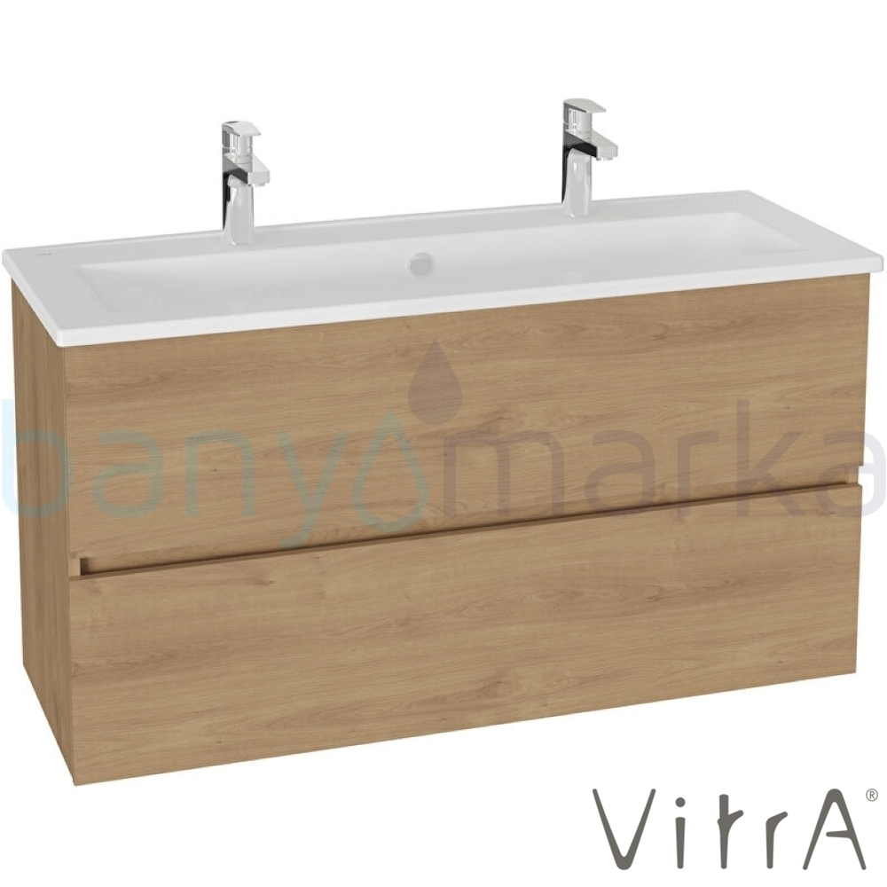 Vitra Mia Plus Square Çift Çekmeceli Lavabo Dolabı, Çift Armatür Delikli Lavabolu, 120 cm, Altın Meşe - 69764