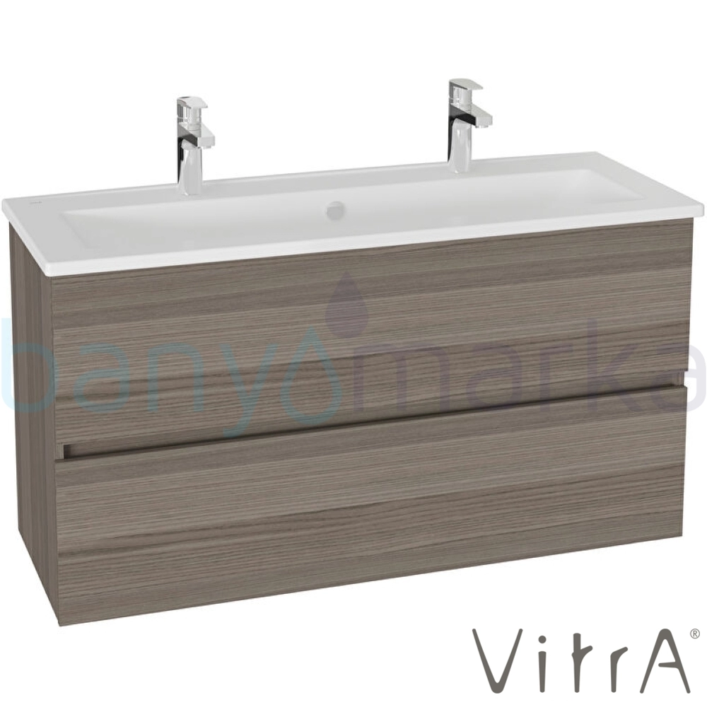 Vitra Mia Plus Square Çift Çekmeceli Lavabo Dolabı, Çift Armatür Delikli Lavabolu, 120 cm, Cordoba - 69807