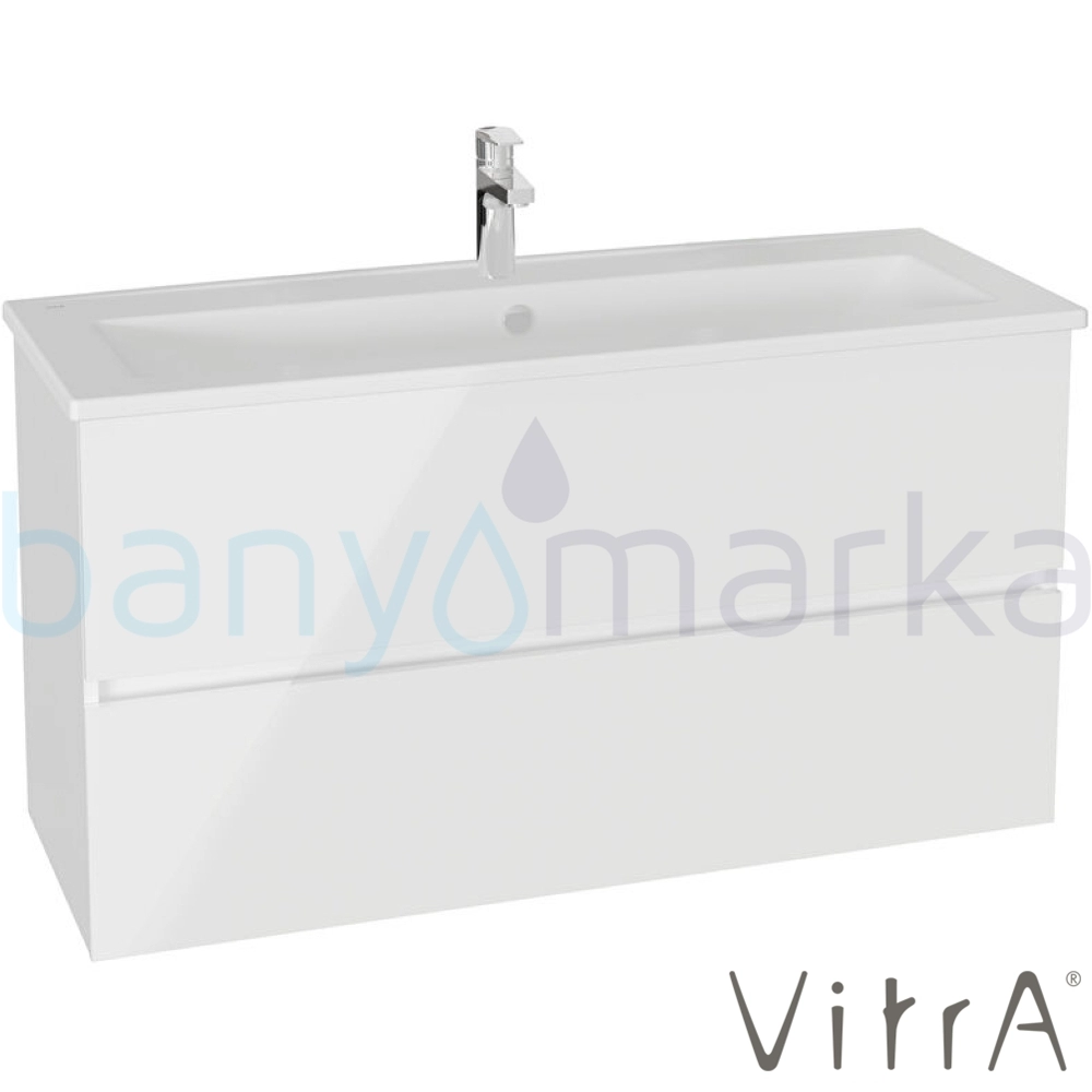 Vitra Mia Plus Square Çift Çekmeceli Lavabo Dolabı, Tek Armatür Delikli Lavabolu, 120 cm, Parlak Beyaz - 80584