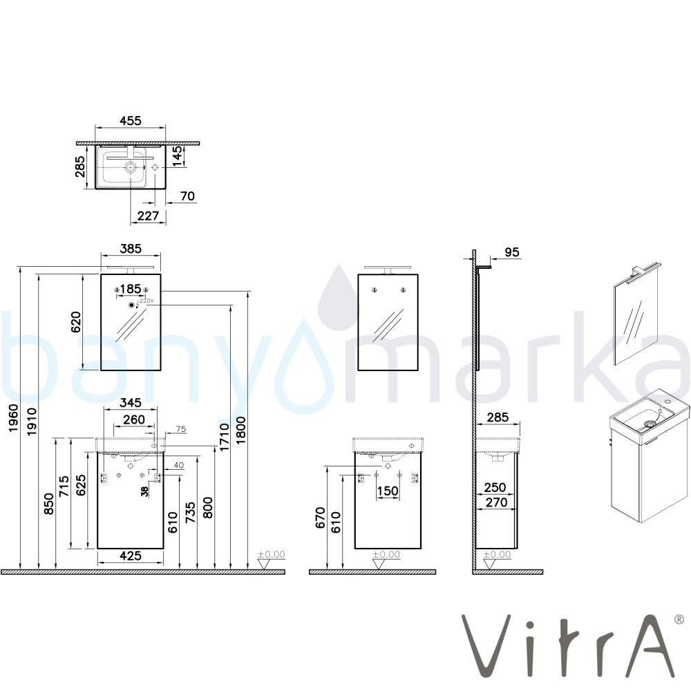 | Ürün Adı: | Vitra Mia Plus Square Demonte Set, 45 cm, Kapaklı, (Lavabo Dolabı, Aydınlatmalı Ayna), Cordoba |